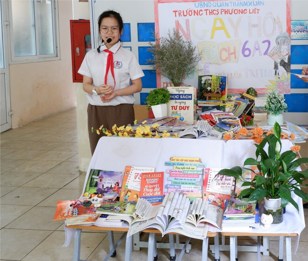 Học sinh các khối lớp háo hức tham gia trưng bày, quyên góp sách nhân Ngày hội sách cấp Trường năm 2023